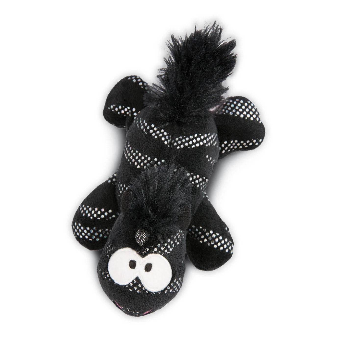 In de kleine pluchen zwarte eenhoorn zitten ook vier verborgen magneten, zodat hij zich hecht aan metalen voorwerpen en oppervlakken.