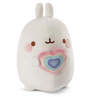 Molang, bekend van tv en social media, is een schattige knuffelvriend gemaakt van superzacht, stretchy pluche. De 3D-regenboog in de vorm van een hart symboliseert vriendschap, liefde, geluk, empathie en positiviteit, trouw aan het motto “Rainbow always win!” Met een extreem schattige gezichtsuitdrukking en de hoogwaardige afwerking is Molang het perfecte cadeau voor fans van alle leeftijden.